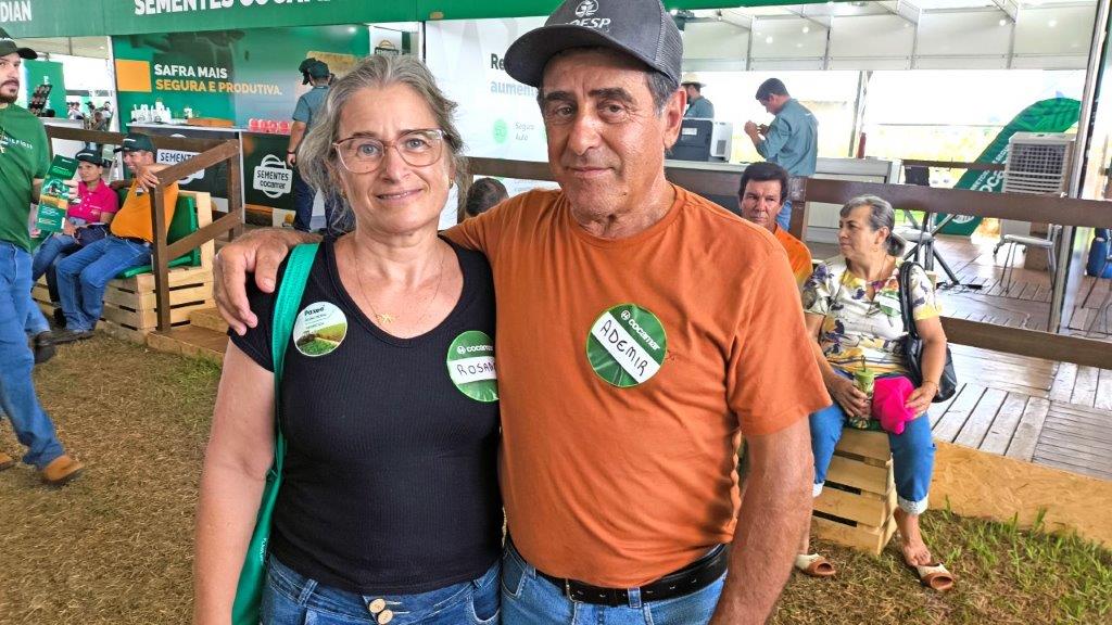 ASSÍDUO – Antonio Crubelati, de São Jorge do Ivaí, é outro cooperado que acompanha com assiduidade as realizações técnicas da Cocamar. Ele visitou a feira em companhia da esposa, Lenira, interessado em visitar os estandes das empresas e da cooperativa e aproveitar o Balcão de Negócios. “As condições oferecidas estão muito boas”, disse. Como já fazem há vários anos, o melhorista de trigo, Rudiger Boye, a esposa e técnica agrícola, Margit, e o filho Marc, de Sertaneja, percorreram os estandes e estações em busca de novos conhecimentos para aplicar na propriedade.