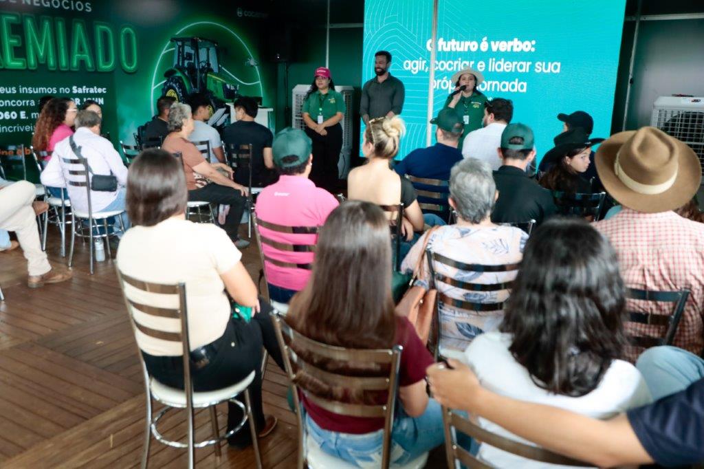 JOVEM – No período da tarde, o público jovem participou da palestra de Betto Alves, intitulada “O Futuro é Verbo: Agir, Cocriar e Liderar sua Própria Jornada”, com aproximadamente 30 jovens e promoveu discussões sobre comportamento, atitude e colaboração. Com linguagem acessível e conteúdo inspirado na realidade do jovem produtor, o encontro estimulou novas percepções e posturas frente às mudanças do agronegócio.