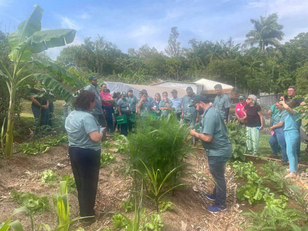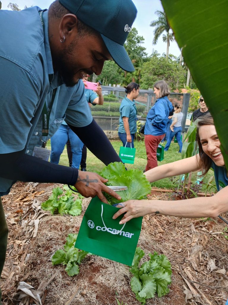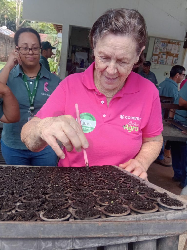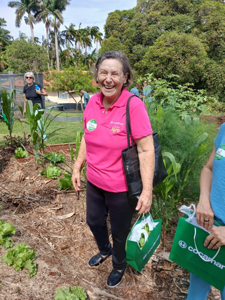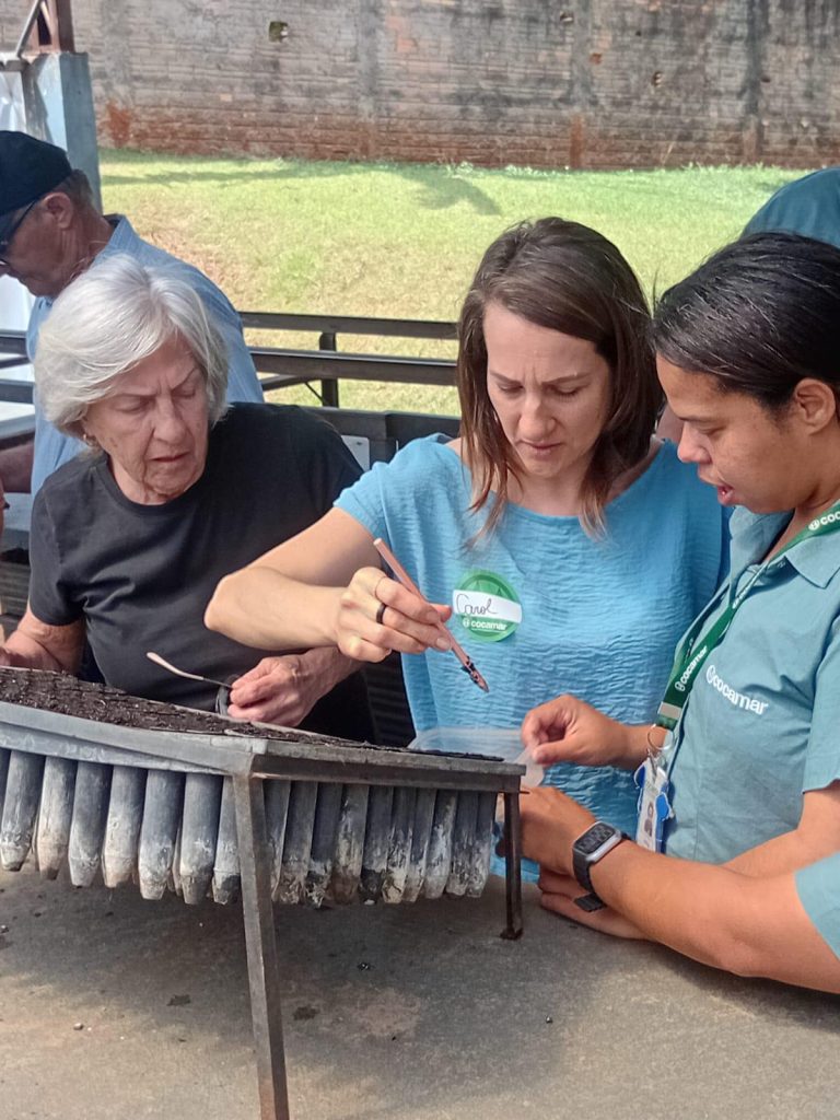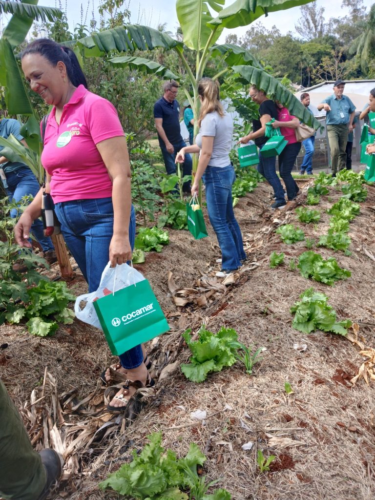 EXPERIÊNCIA – Cooperados convidados passaram um dia acompanhando as atividades diárias das duas equipes que trabalham nos viveiros em Maringá e em Rolândia, semeando as sementes das árvores nativas, colhendo hortaliças, fazendo alongamento, vivenciando a experiência em tudo, até tomando um café da tarde,