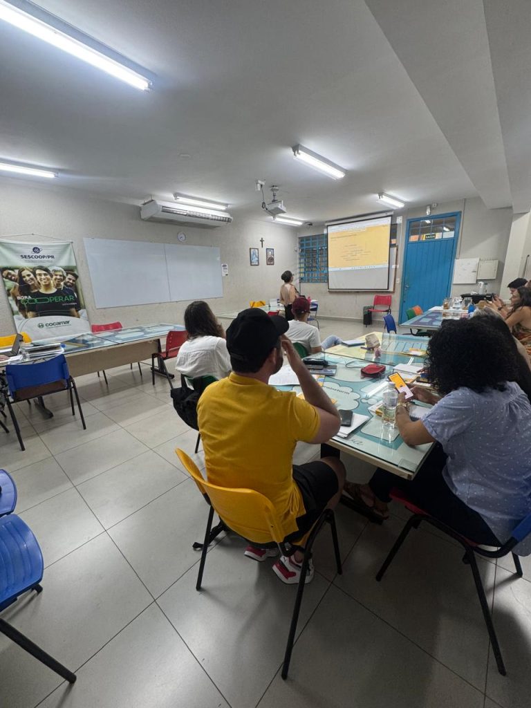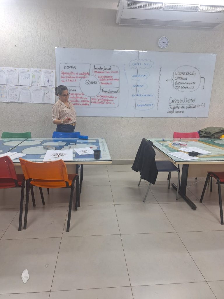 FORMAÇÃO – A equipe pedagógica da escola participou de formações que abordaram desde o autoconhecimento e a valorização das relações interpessoais até o planejamento de metodologias colaborativas, com destaque para a vivência do Cooperjogo, ferramenta aplicada com os 104 alunos, do sexto e sétimo ano, como base para o desenvolvimento de projetos ao longo do ano letivo. Os alunos estão tendo a oportunidade de desenvolver projetos próprios com o apoio do Cooperjogo, que funciona como um guia para promover a escuta ativa, a construção coletiva de soluções e o fortalecimento da convivência.