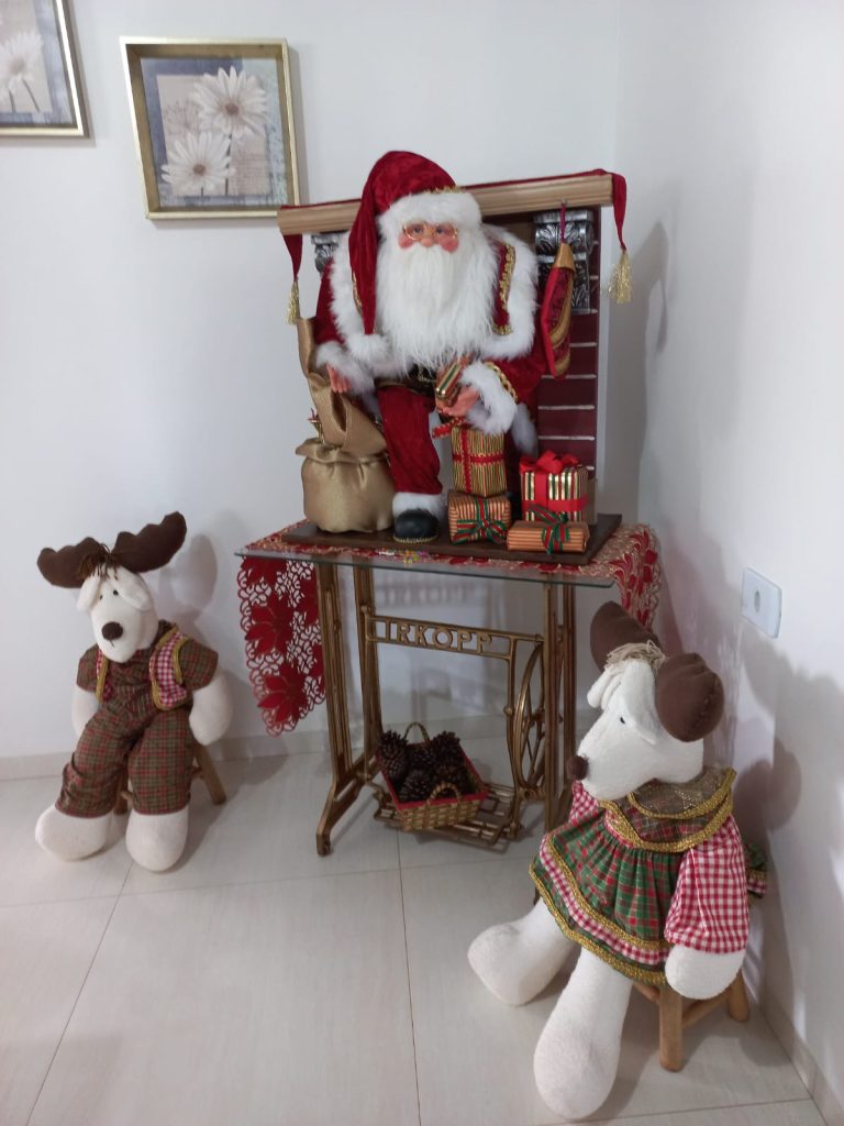 COLEÇÃO CRESCENTE – “Minhas duas filhas e meu filho sempre gostaram de ajudar a fazer os enfeites e a montar a decoração. Agora, o bichinho também picou minhas quatro netas. Todos ajudam na montagem e depois a guardar tudo. Temos um armário feito especialmente para isso, com tudo etiquetado. E a cada ano a coleção aumenta”, comenta. Durante o ano, Delmira sempre que pode, vai confeccionando peças novas ou reformando as antigas para tudo estar perfeito no próximo Natal.